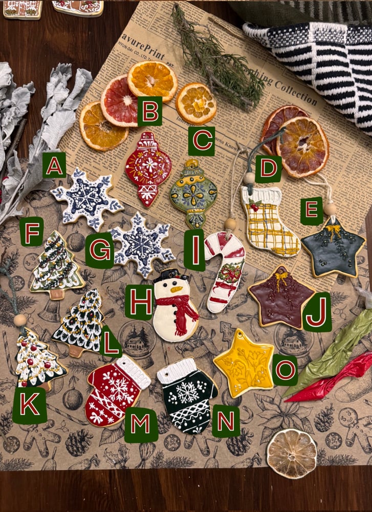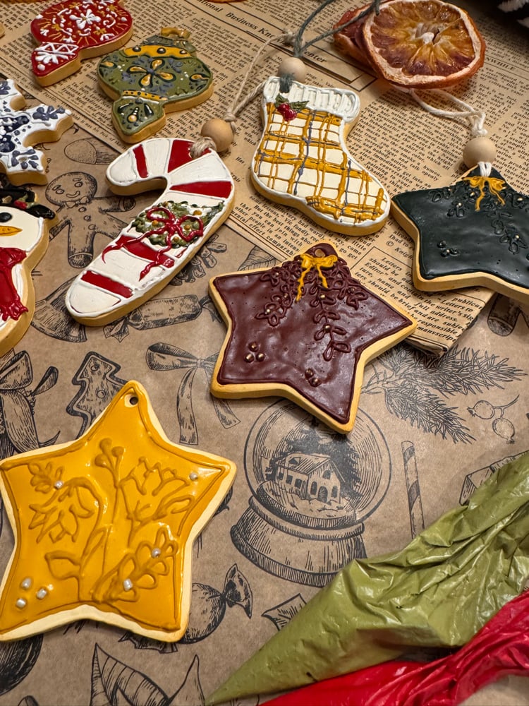 Little sugar cookies that you can enjoy for years to come. Bring warmth and charm to your holiday décor with these handcrafted clay ornaments. Each piece is individually hand-painted with intricate detailing, making every ornament a unique little work of art.